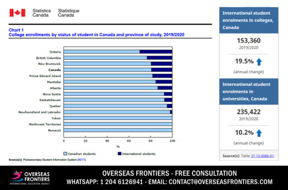 Overall in 2019/2020—taking into consideration both Canadian and international students—63.1% of all enrolments were in universities, while 36.9% were in colleges.