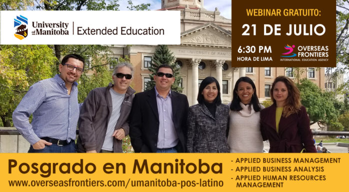 La University of Manitoba y la Overseas Frontiers te invitan para el webinar sobre posgrados a realizarse el dia 21 de julio a las 6:30pm (hora de