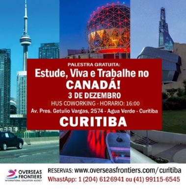 Palestra gratuita em Curitiba no dia 03 de dezembro da Overseas Frontiers sobre “Estude, Viva e Trabalhe no Canadá”.03 de dezembro, 2019ho
