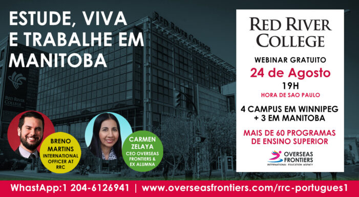 O Red River College e a Overseas Frontiers convidam você para o webinar a ser realizado no dia 24 de agosto às 19h (hora de Sao Paulo). Red River College é a melhor e maior faculdade de Manitoba, tem mais de 60 programas entre diplomas de 2 anos e certificados de 1 ano, além de oferecer alguns cursos de 4 anos, também oferece certificados avançados ou pós-graduação. Possui 4 campi em Winnipeg e 4 no interior de Manitoba. Também oferece carta condicional com inscrições abertas até 2023. Aproveite esta oportunidade.